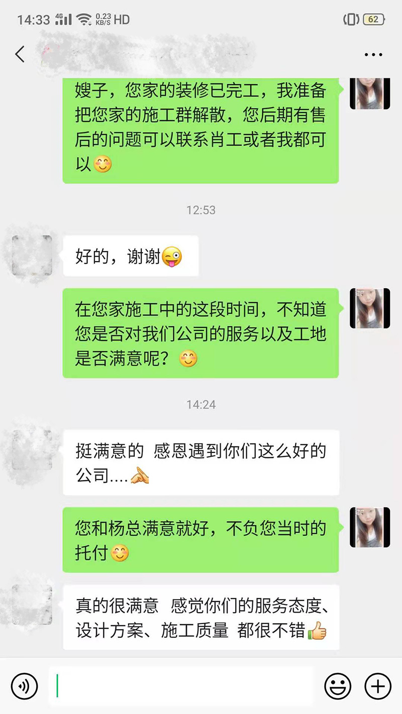 真的很滿意,很感恩遇到這么好的公司,服務(wù)態(tài)度、施工質(zhì)量、設(shè)計方案都很不錯。
